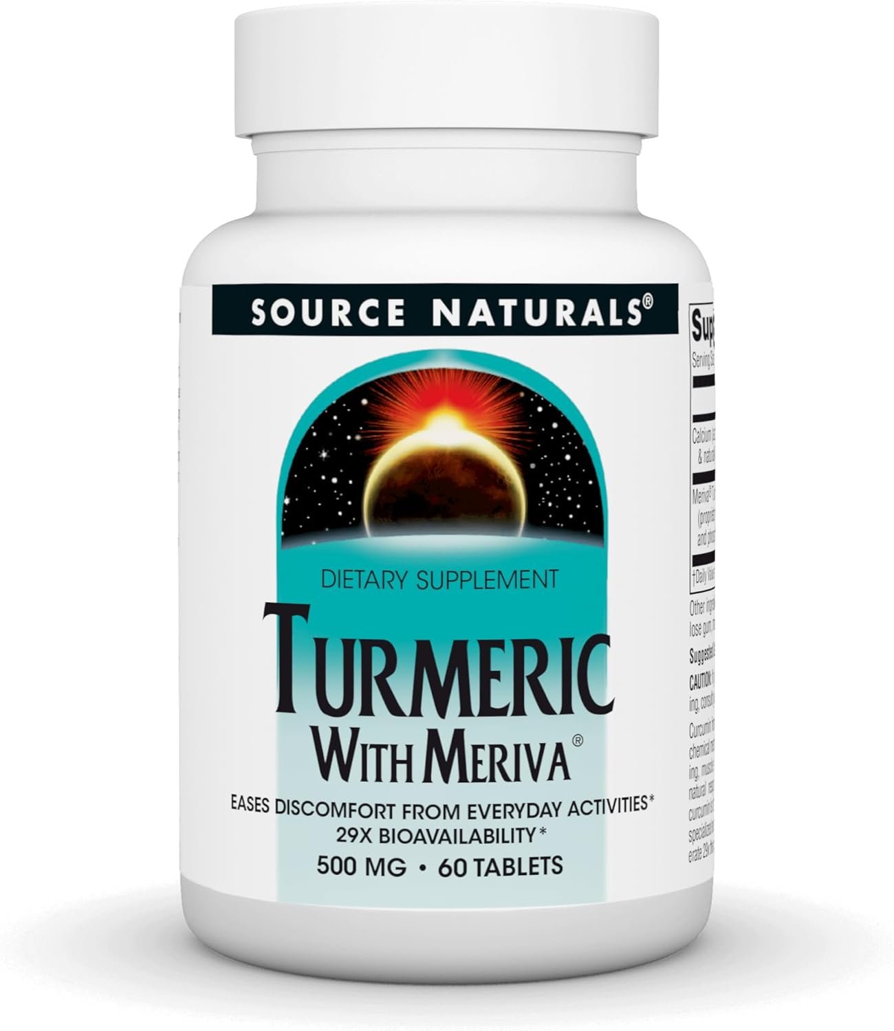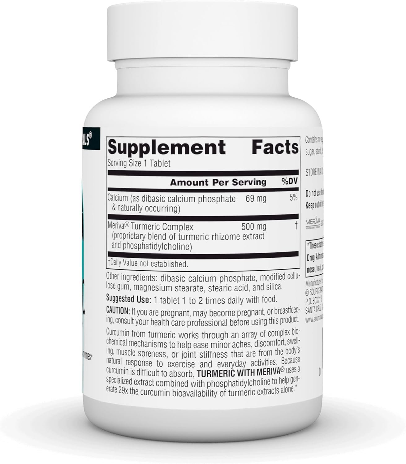 Calcio, Meriva Turmeric Complex (mezcla patentada de extracto de rizoma de cúrcuma y fosfatidilcolina), ingredientes inactivos: fosfato de calcio dibásico, sílice, estearato de magnesio, ácido esteárico y goma de celulosa modificada.