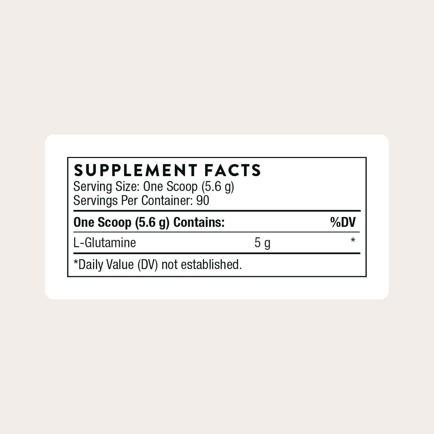 Una cucharada (0.20 oz) Contiene: L-Glutamina 0.18 oz. Otros Ingredientes: Ninguno